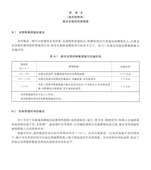 ——室內氡濃度控制要求分別以目標水平和行動水平給出,給出的數值與原標準相比有所降低,與國際放射防護委員會和衛生組織的*新要求一致。